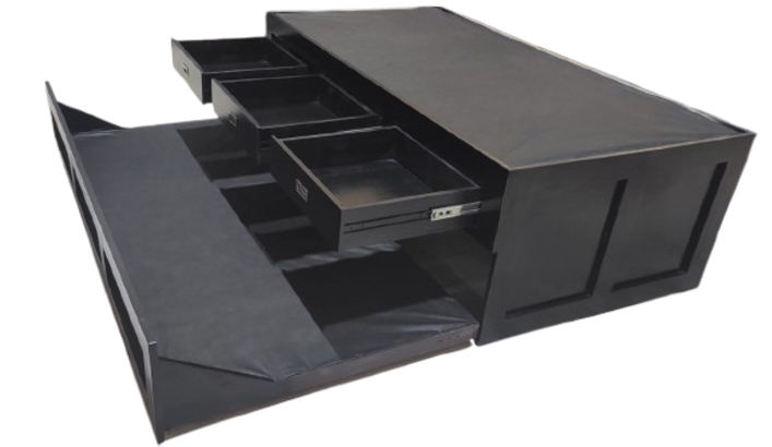 Base Canguro Individual Modelo Lupita Con 3 CajonesFabricada en madera de pino y caobilla, medidas: Alto 63 cms, Fondo 204 cms, Ancho 105 cms, tendido corrido, resistente y durable, con 3 cajones con correderas de extensión, incluye tafeta sobre el tendido, para proteger sus colchones, en la rodabase cabe un colchón con una altura maxima de 20 cms, Formada por dos piezas, Cama Superior y Rodabase: Disponible en Color chocolate, gris y blanco individual $5790, matrimonial con individual $6790