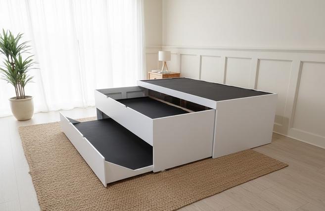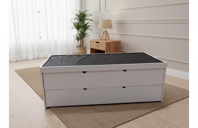 Base Canguro Triple Individual Modelo NidoFabricada en madera de pino y mdf, medidas: Alto 72 cms, Fondo 208 cms, Ancho 112 cms, tendido corrido, incluye tafeta sobre el tendido, para proteger sus colchones, en las rodabases cabe un colchón con una altura maxima de 20 cms, Formada por tres piezas, Cama Superior y dos Rodabases: Disponible en Color chocolate, gris y blanco $6990