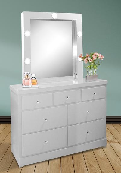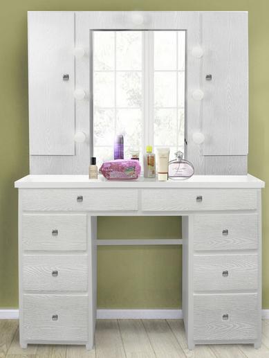 Acabado liso disponibles en color blanco, chocolate o gris, incluye 5 focos LED, con las siguientes medidas, 180 cms, Ancho 74 cms y de Fondo 40 cms $2790 Peinador Vanity Modelo Guapa